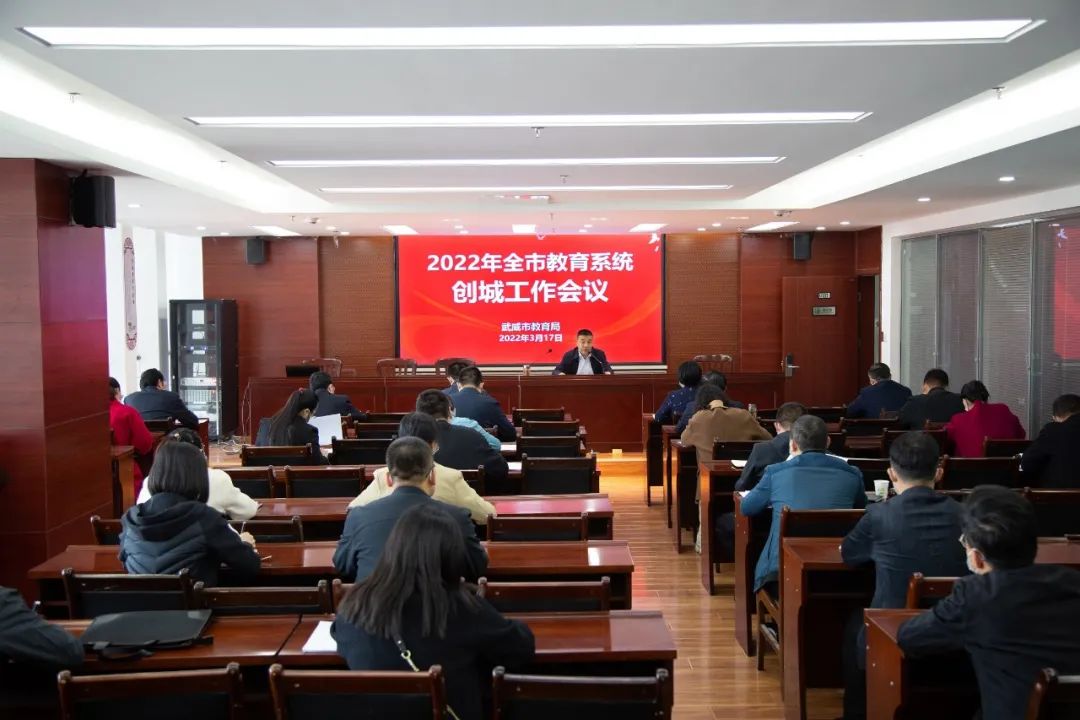 会议强调,市第五次党代会提出了建设“六个新武威”的奋斗目标,今年是我市新一轮全国文明城市创建周期的巩固提升、全面达标之年,也是为明年测评打好基础的关键一年,全市教育系统要充分认识创城工作的重要性、艰巨性、紧迫性,一要加强组织领导,凝聚工作合力;二要增强责任意识 加强统筹谋划;三要聚焦关键环节,突出工作重点;四要巩固创建成果,提升创建水平。结合《全市教育系统创建第七届全国文明城市2022年工作实施方案》要求,各中小学校要聚焦重点工作,在强化理想信念教育、培育和践行社会主义核心价值观、培育文明道德新风尚、加强未成年人思想道德建设等方面下功夫,精心打造实地考察点位,认真谋划组织文明校园、文明细胞创建活动,广泛开展“扣好人生第一粒扣子”、“童心向党”主题教育实践活动,扎实开展“新时代好少年”等未成年人先进典型学习宣传活动、社会主义核心价值观“三进”活动、“四史”教育等思想道德教育活动,全面落实立德树人根本任务,促进学生德智体美劳全面发展,促进教育高质量发展。