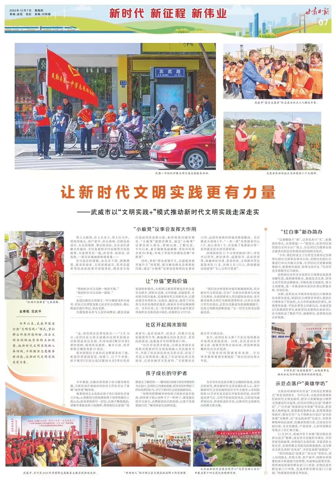 12月7日《甘肃日报》刊登:让新时代文明实践更有力量