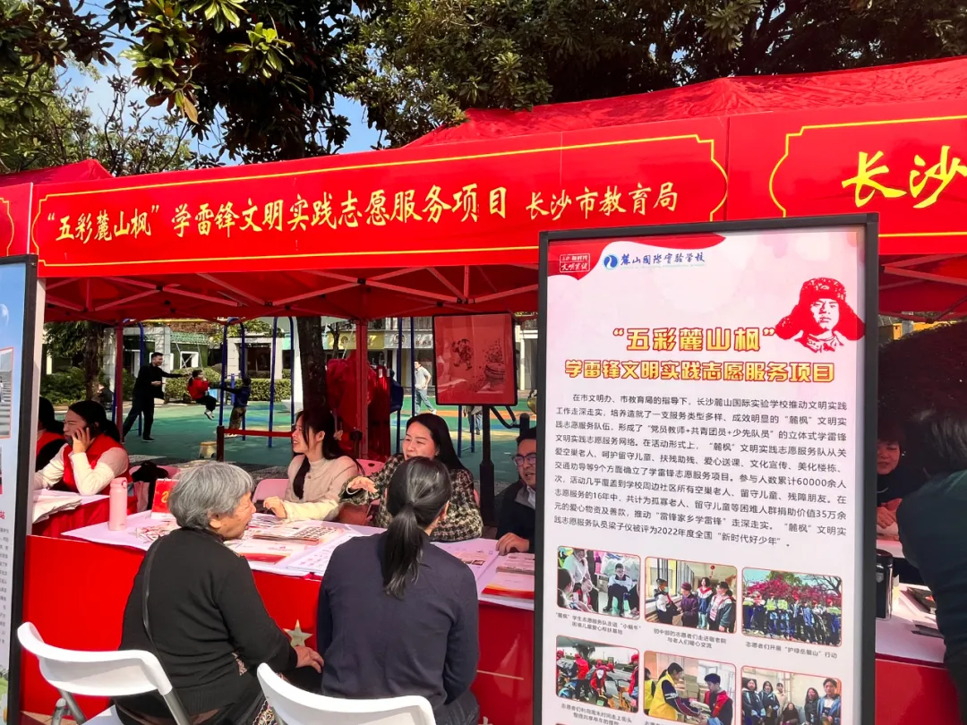 “我家孩子上三年级了,我想了解一下如何培养孩子的阅读兴趣?同时给我推荐一些好的课外阅读书目吧。”在“五彩麓山枫”学雷锋文明实践志愿服务项目摊位前,居民刘阿姨正在向志愿者咨询如何培养孩子课外阅读兴趣的相关事宜。据“五彩麓山枫”学雷锋文明实践志愿服务项目负责人周老师介绍,“五彩麓山枫”学雷锋文明实践志愿服务项目是长沙麓山国际实验学校在长沙市文明办、市教育局的指导下打造的文明实践品牌,涵盖爱国主义教育、志愿服务、课外阅读、勤工助学和特长展示领域,旨在全面提升学生的综合素养。